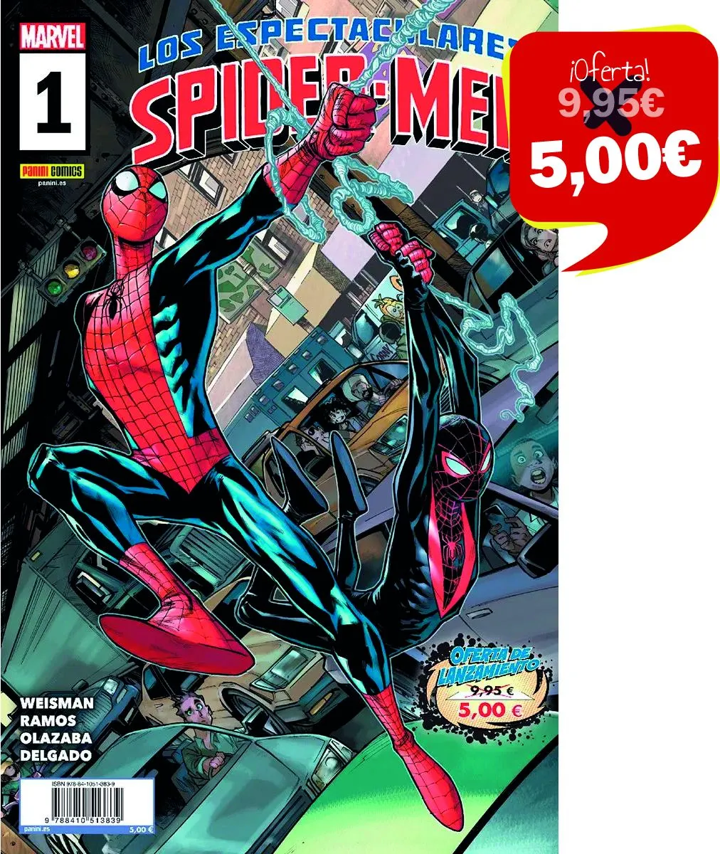 ¡Nuevo formato trimestral, mejor y más económico, con precio especial de lanzamiento! ¡Una iniciativa que forma parte de Panini Back to Basics! Las estrellas arácnidas de Marvel se unen por primera vez en una serie abierta. Peter Parker y Miles Morales formarán equipo en cada número. Un dúo más que dinámico, asombroso, sensacional o superior... ¡espectacular! Con Greg Weisman, el creador detrás de la aclamada teleserie The Spectacular Spider-Man, y el retorno del legendario artista arácnido Humberto Ramos. Sabes que no te lo puedes perder.